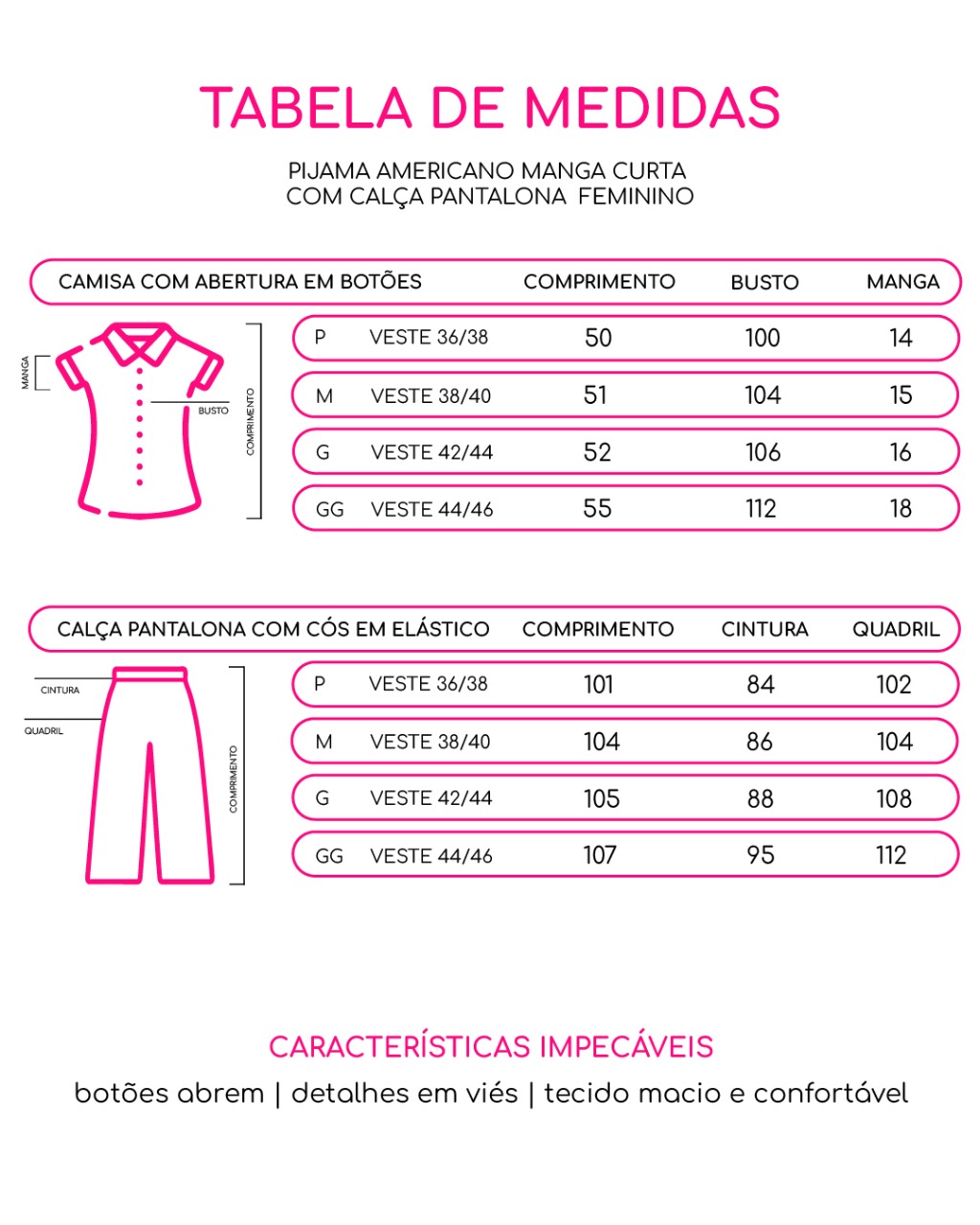• Tecido leve, macio e com ótimo caimento